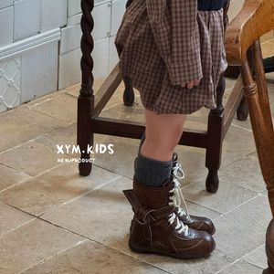 爆款儿童拳击鞋2025年秋季新款童鞋女童复古小众西部牛仔中筒靴子