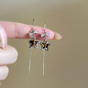 韩系超闪锆石蝴蝶结星星豹纹吊坠耳线简约百搭耳环小众高级感耳饰