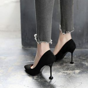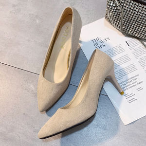 鞋子女学生韩版高跟鞋女尖头新款春秋黑色工作职业细跟猫跟单鞋