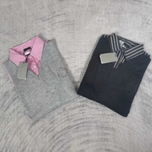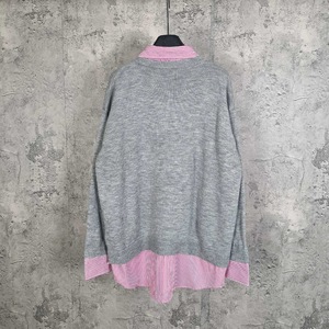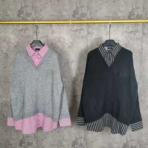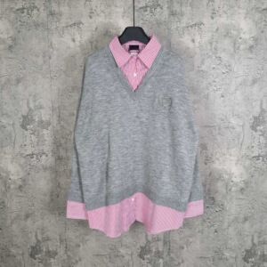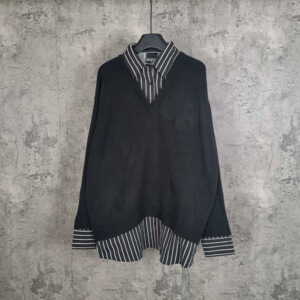 南油高货25FW秋冬新品学院风徽标刺绣绣花假两件毛衣拼接纽扣衬衫