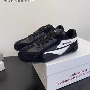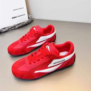 赛车鞋/薄底红色德训鞋女春夏百搭内增高4CM芭蕾板鞋子女复古阿甘