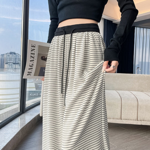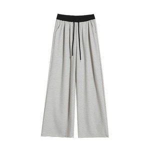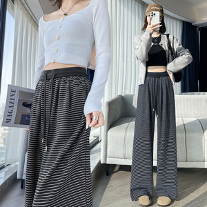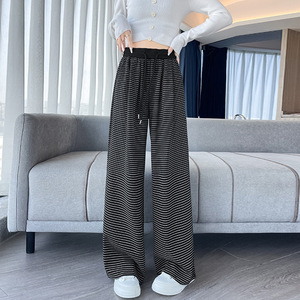 撞色条纹阔腿裤女2025秋款宽松羊绒百搭慵懒风高腰垂顺针织糯米裤