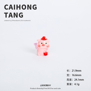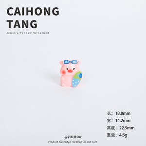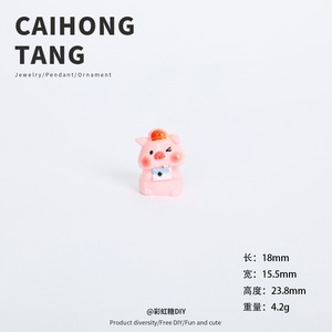 树脂卡通粉红发财猪公仔 DIY饰品配件创意桌面摆件自制钥匙扣挂件