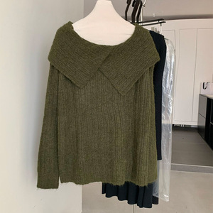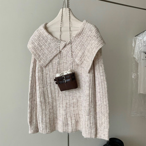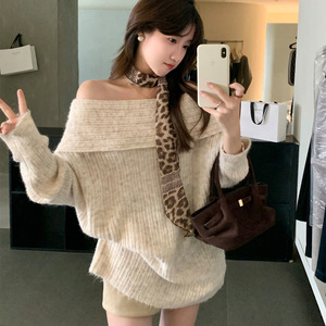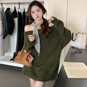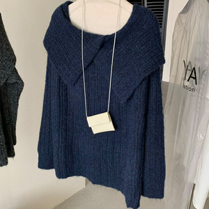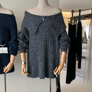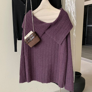 十三行韩系氛围感慵懒穿搭独特超好看松弛感紫色一字肩针织毛衣