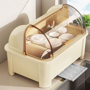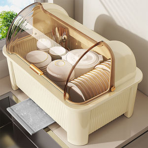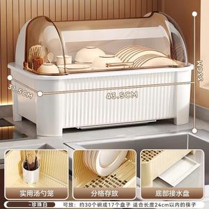 碗筷收纳盒放碗碟收纳架厨房家用多功能带盖沥水置物架碗柜收纳盒