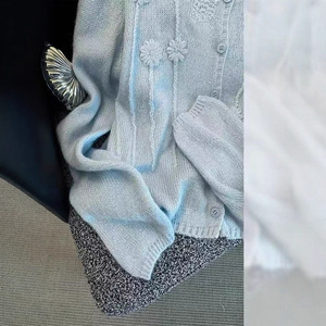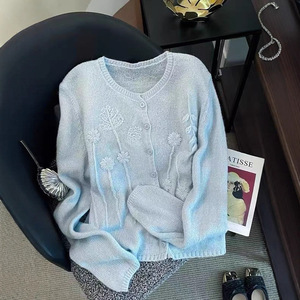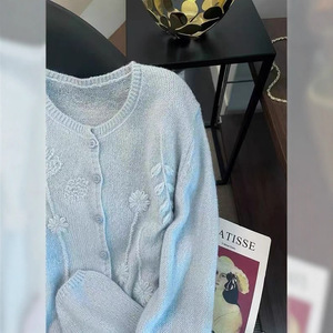软糯立体刺绣小香风圆领针织开衫女秋季减龄百搭时尚宽松毛衣
