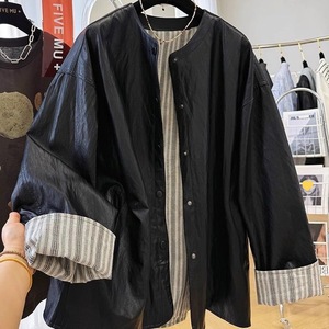 欧货皮衣2025春季夹克新款上衣宽松翻领皮夹克设计外套黑色氨纶