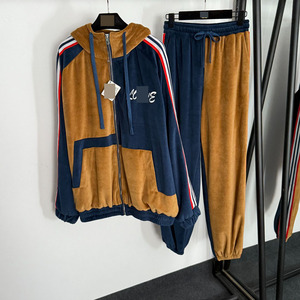 2025秋款运动套装胸前字母刺绣拼色连帽拉链外套+松紧腰束脚长裤