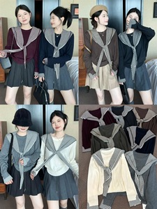 学院风灰色条纹披肩长袖针织衫女秋季韩系穿搭chic别致慵懒风上衣