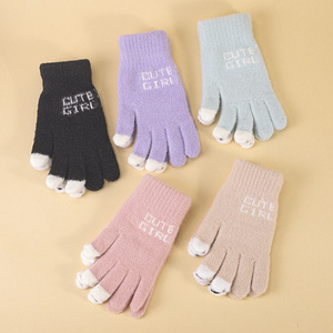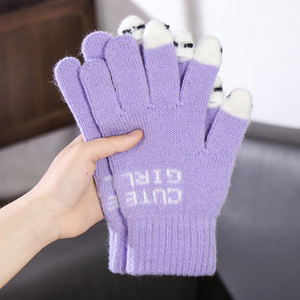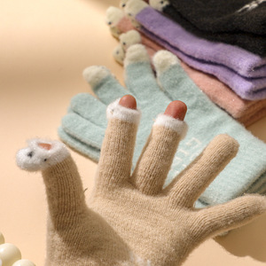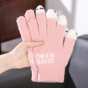 新款冬季保暖针织手套可爱学生写字玩手机加厚分指可触屏露指手套