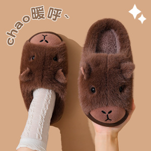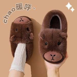卡皮巴拉棉拖鞋男款冬季2025新款室内家居保暖居家厚底毛绒拖鞋女