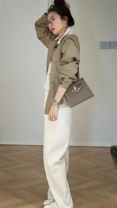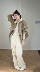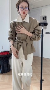 秋季新款设计师款文艺感翻领撞色领风衣外套精致宽松上衣146