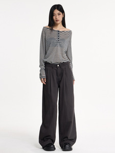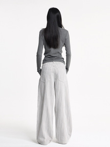 橙绢女装#美式复古条纹垂感休闲裤子女秋季中性宽松高级感阔腿裤