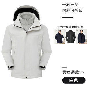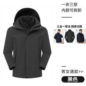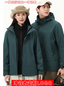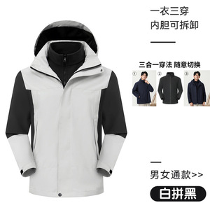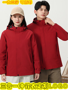 防风防雨三合一冲锋衣定制工作服加绒外套可拆卸工装印字logo刺绣