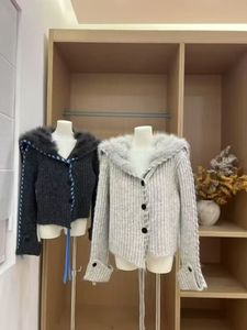 2025秋冬洋气新款海军领毛衣皮草外套狐狸毛女开衫针织大翻领韩版
