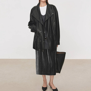 【复古中裙】獨家定染经典黑-立体压褶真丝丝绒