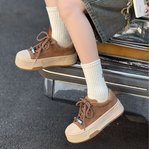 真皮厚底休闲板鞋女2025秋季新款小个子增高圆头金属印字扣松糕鞋