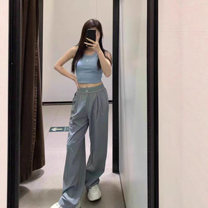 青岛Alo class休闲运动长裤女梭织阔腿裤高腰织带宽松显瘦轻薄