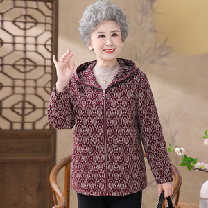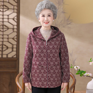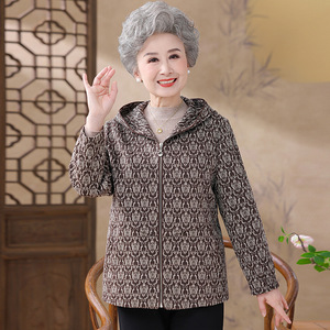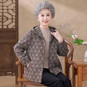 老年人秋装女奶奶洋气外套中老年妈妈2025新款老太太宽松连帽衣服