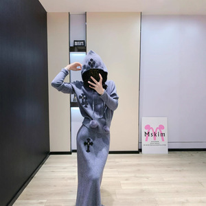 ch25ss秋冬新款重工连帽针织毛衣搭配裙子套装时尚百搭