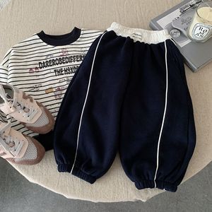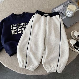邦诚儿童加绒裤子2025冬季新款韩版男女童卡绳宽松卫裤男孩运动裤