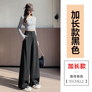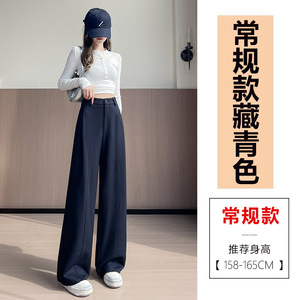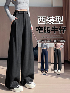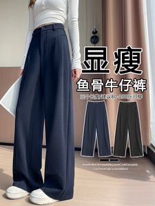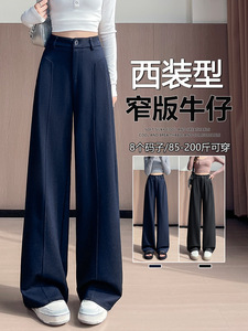 针织弹力牛仔裤秋冬新款高腰垂感宽松小个子慵懒拖地阔腿直筒裤