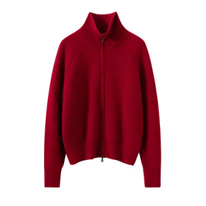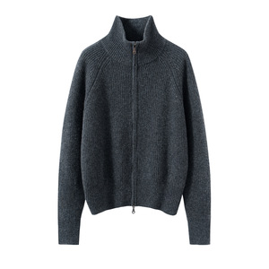 七针加厚纯山羊绒开衫女款半高领毛衣外套秋冬新款修身显瘦韩系风