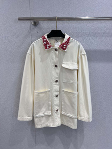 2025早秋新款Ch南油工厂小香风气质优雅个性钉珠领中长牛仔外套