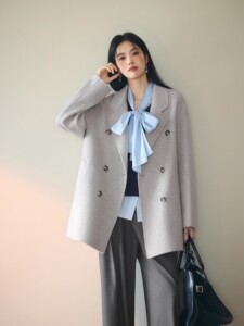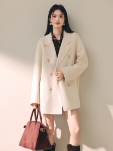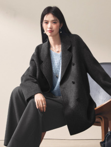 伊*L女装2025秋季新品双排门襟宽松双面呢毛呢大衣外套1G9970761