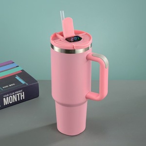 跨境新款40oz显温汽车杯 304不锈钢大容量真空保温杯手柄吸管水杯