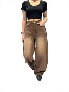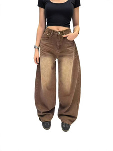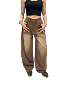梵思羽小众做旧直筒牛仔裤女宽松高级感高街阔腿裤复古弯刀裤秋款