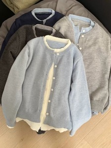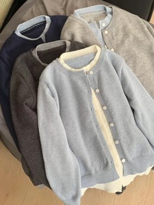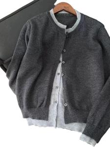 韩系深秋chic撞色假两件灰色针织开衫外套女慵懒外搭毛衣上衣