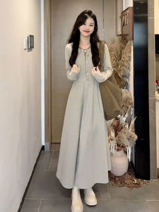 冷淡系漂亮独特别致气质内搭打底长袖连衣裙子长裙2025新款女秋季