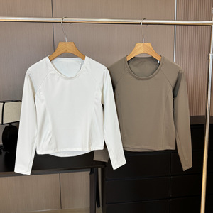 0906x4~户外训练速干透气立体剪裁字母印花女士长袖圆领针织T恤