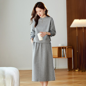 时尚休闲灰色运动装套装女2025新款秋季高级感上衣卫衣半身裙