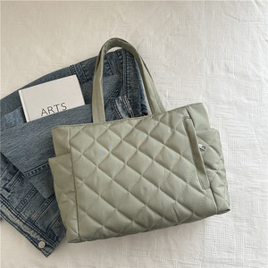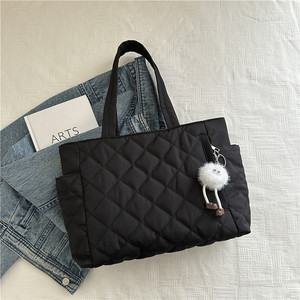 韩系ins棉服包包女2025新款菱格大容量手提托特包通勤购物单肩包