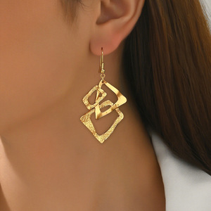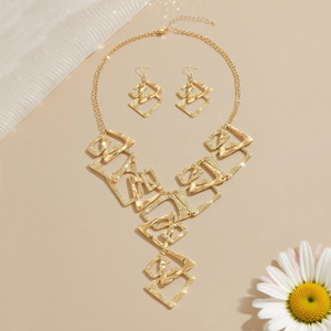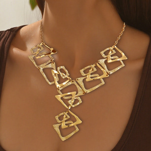 复古夸张几何不规则三角形拼接镂空金属项链耳环套装choker锁骨链