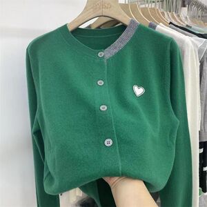 秋冬新款韩版爱心拼色贴布宽松打底长袖毛针织衫开衫上衣女装