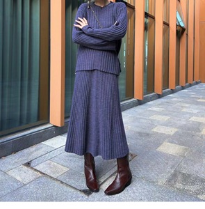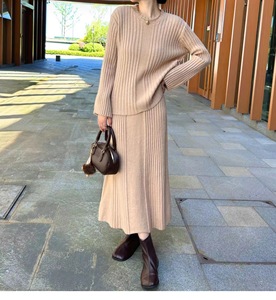 2025年秋冬新款高级感轻熟风宽松坑条针织衫套装裙韩版外贸两件套