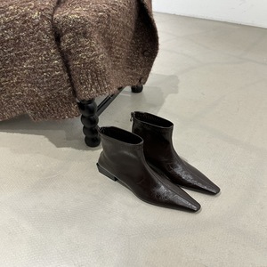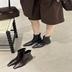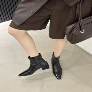 高级感抓纹软皮粗跟短靴韩版气质尖头瘦瘦靴简约百搭及裸靴