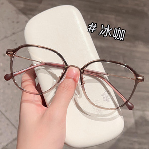 新款小红书复古多边形金胶眼镜框批发丹阳女显白可配有度数眼镜架