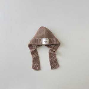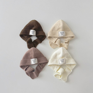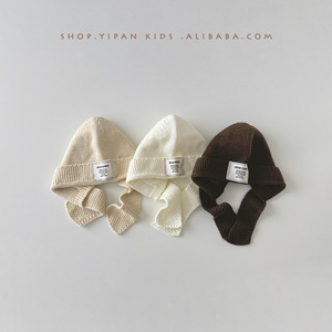 一潘 宝宝帽子秋冬新款字母标宽边绑带针织帽儿童保暖护耳毛线帽