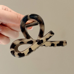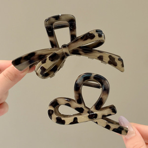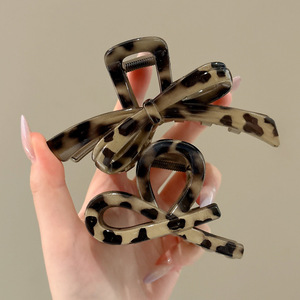 韩系豹纹蝴蝶结抓夹女高级感半扎发鲨鱼夹超大号发夹气质头饰发卡