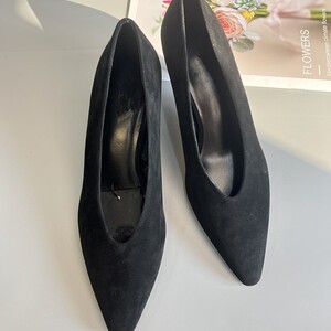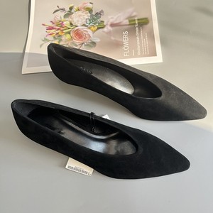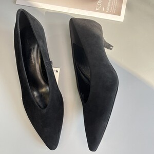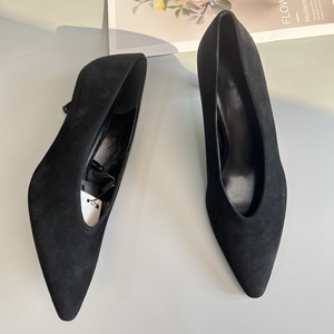 西班牙MD女鞋2025秋季新款黑色尖头简约绒面革真皮高跟鞋气质单鞋