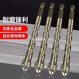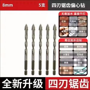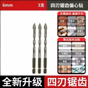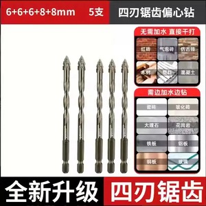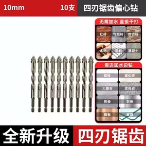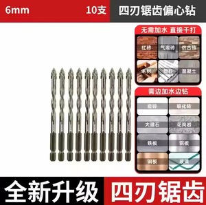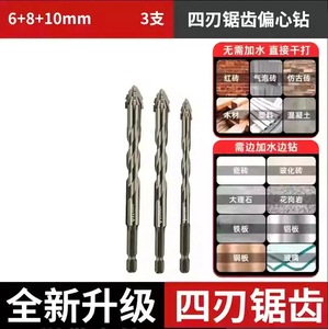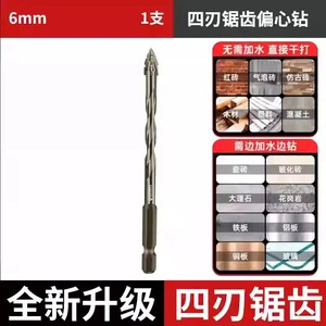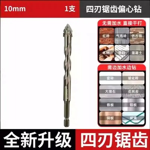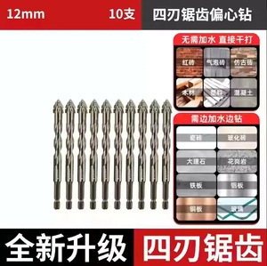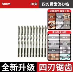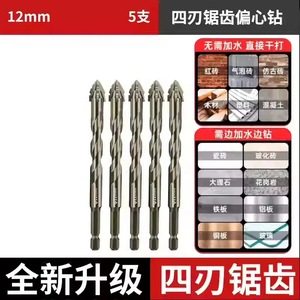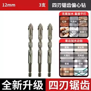 瓷砖打孔混凝土电钻转头超硬干打四刃锯齿偏心钻头高硬度14mm