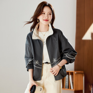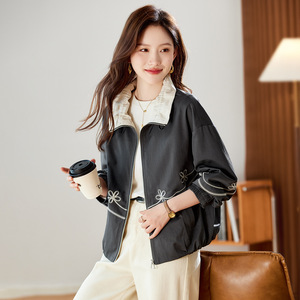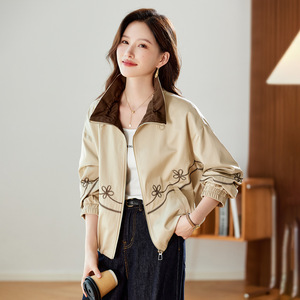 夹克短外套女春季新款设计感刺绣花朵收腰显瘦防晒时尚百搭上衣潮