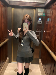 白水女 高智感姐姐 V领毛针织衫女薄款毛衣百褶裙韩系套装上衣