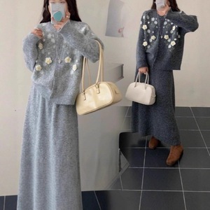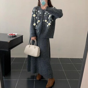 韩系刺绣花朵针织套装女2025秋冬新款绣花开衫+高腰半身裙两件套