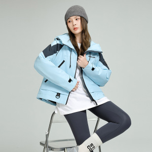 2025年冬季新款户外防寒平湖羽绒服女短款撞色拼接加厚休闲小个子