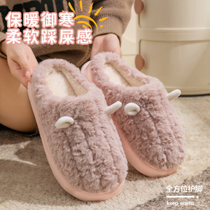 棉拖鞋女秋冬季2025新款情侣厚底室内家居保暖防滑加绒毛绒棉鞋男